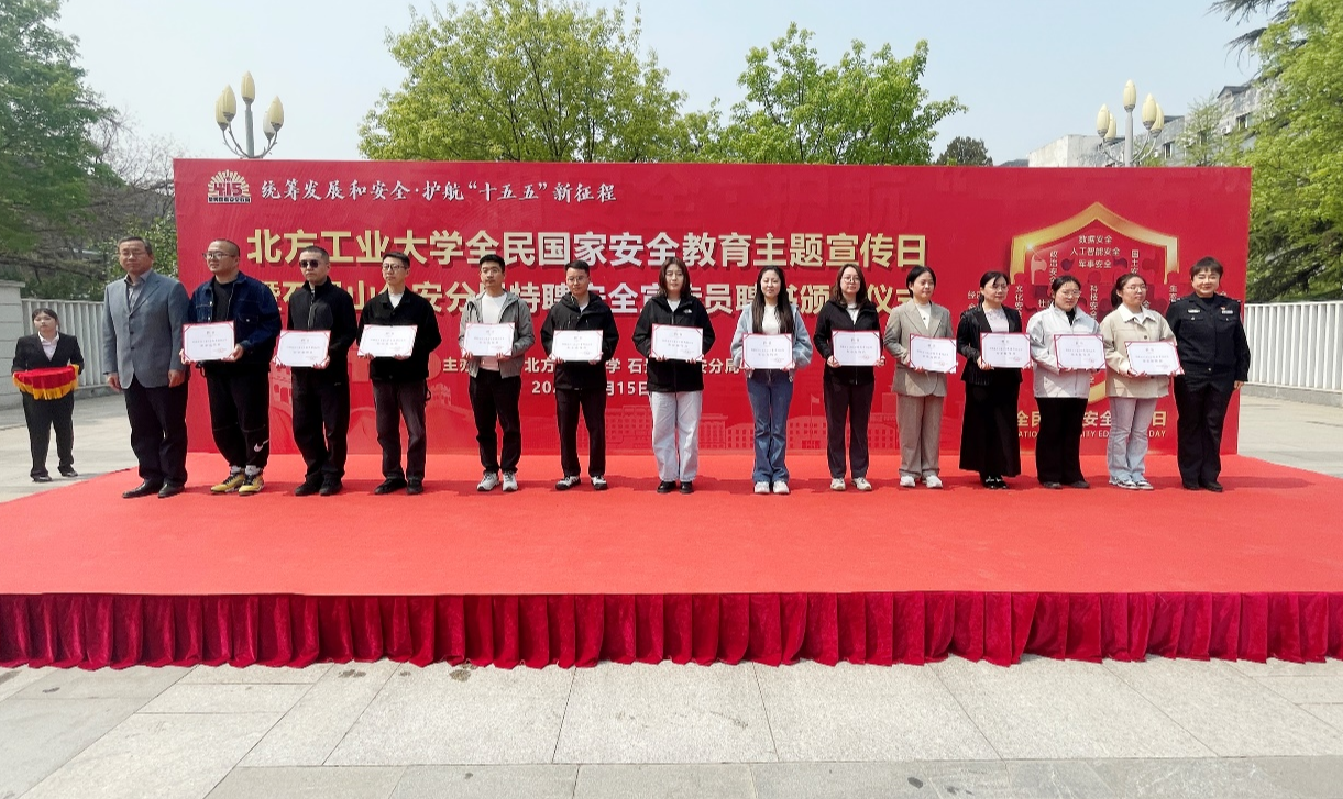 2026年4月15日是第11个全民国家安全教育日。为贯彻落实总体国家安全观,按照市教育两委部署,学校以“统筹发展和安全护航‘十五五’新征程”为主题,组织开展了系列全民国家安全教育活动。4月15日中午,学校联合石景山区公安分局,在毓秀广场举办北方工业大学全民国家安全教育主题宣传日暨石景山公安分局特聘安全宣传员聘书颁发仪式活动,师生代表300余人参加。党委副书记史贞军、石景山公安分局副局长白鸥出席活动,并为安全宣...